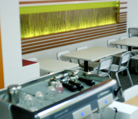 We have built a LEED-certified space with energy efficent appliances, heating and cooling, bamboo accents, recycled glass tabletops, recycled rubber flooring, compact florescent lighting, electronic menuboards (in lieu of paper menus) and dozens of other eco-friendly touches. In addition to all that, we use eco-friendly packaging and cleaning products, we carefully manage our energy and water use, and we recycle everything we can and compost all our food scraps. We do everything possible to reduce our footprint on the planet.