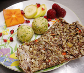 Raw Strawberry Pudding, Apple Coconut Cookie and Bananas $6 (sugar-free, sweetened with agave)