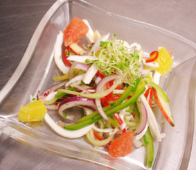 Spring greens with chef's selection of fresh produce, nuts, tofu, sprouts and more with choice of ranch, carrot ginger or balsamic vinaigrette (may contain peanuts, soy, tree nuts and corn)